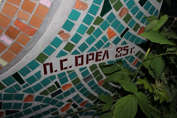Рядом с датой, как правило, фамилия автора эскиза мозаики. В случае с остановкой Троицкое автором является нежинский художник Петр Свиридович Орел. В свое время Петр был активным членом Черниговского областного общества художников. В 1980-х он создавал эскизы мозаик для автобусных остановок. Его проекты также воплощены на остановках в с. Кучиневка, Сновского района, с. Змитнов, Корюковского района, с. Веселое, Куликовского района.