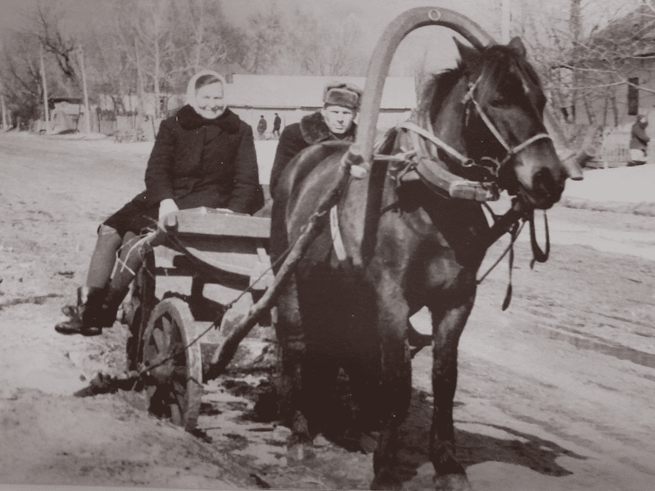 В 1920-х конными перевозками продолжали пользоваться те, кто еще держал лошадей в своем хозяйстве. Об этом свидетельствуют фотографии тех времен. Например, в альбоме «Трудом и победой освящены», посвященном с. Рождественское, Коропского района есть несколько таких фото.
